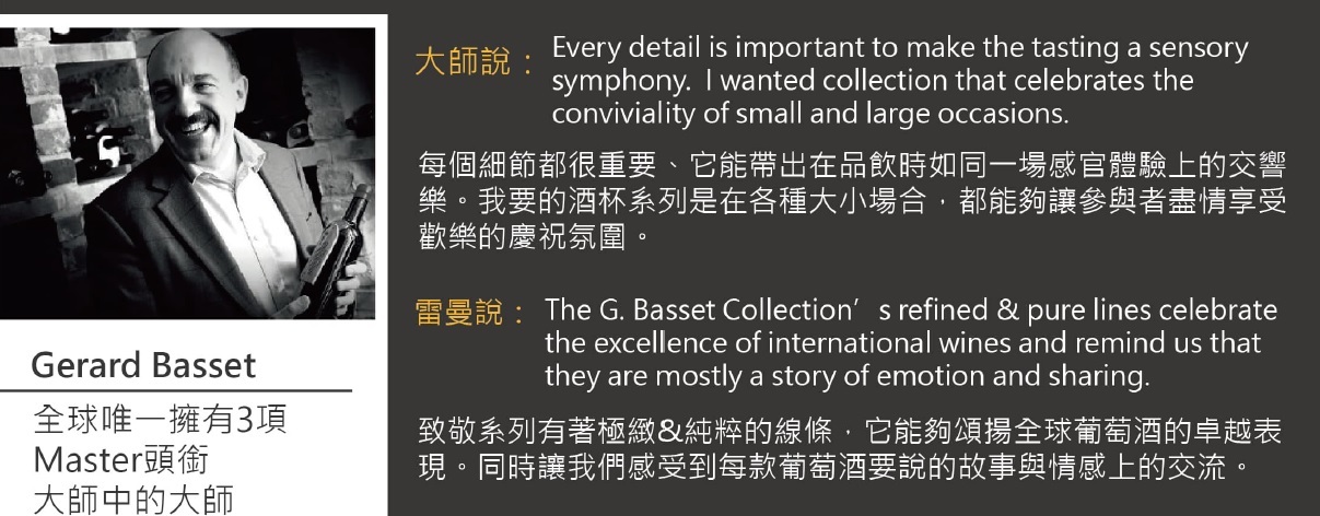 同時,也是大師反璞歸真、用一生的本事,淬鍊出最能體現各式酒款精神的杯型,向他一生熱愛的葡萄酒致敬