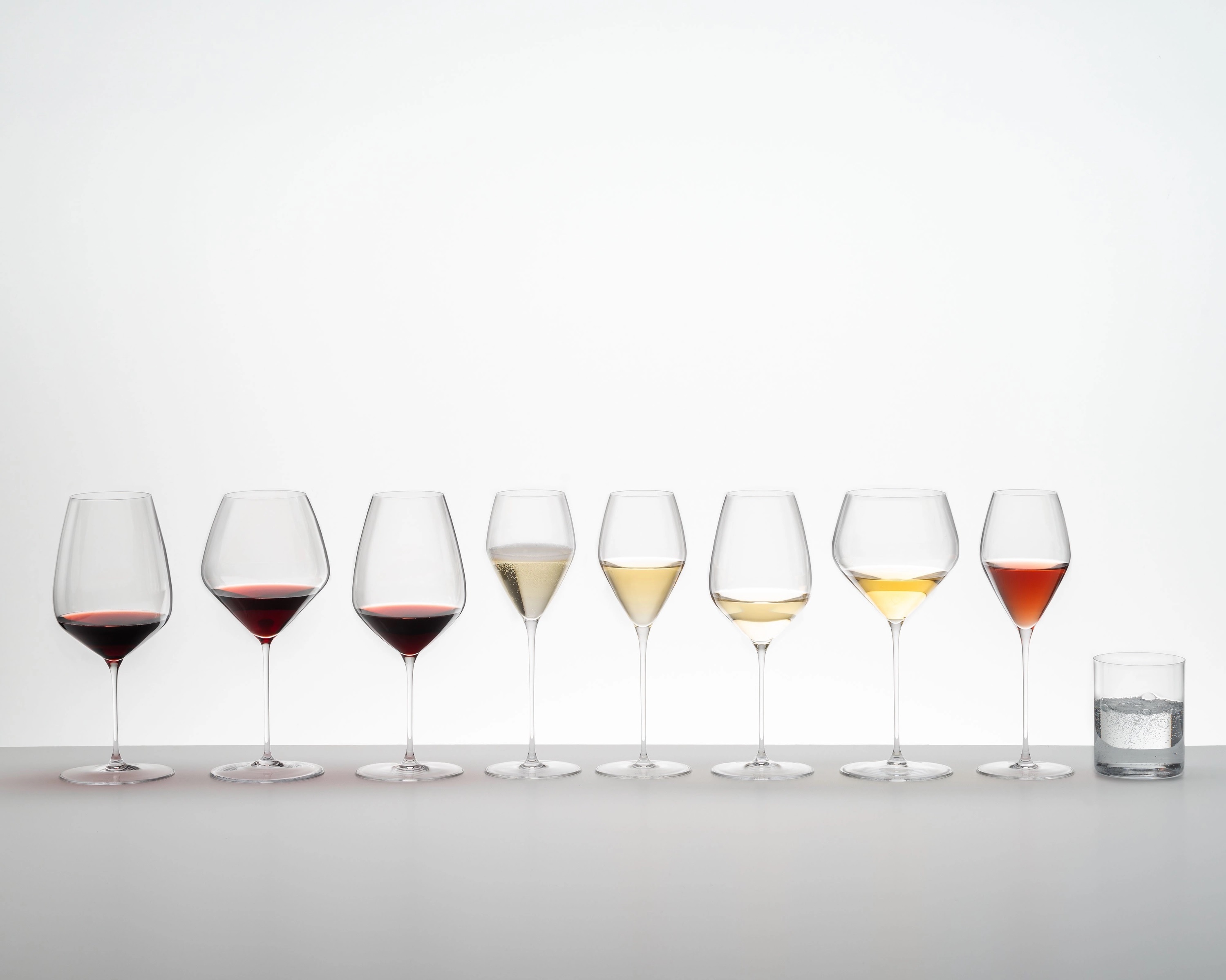 VELOCE 系列為2022 年最新推出的葡萄品種專用杯系列。VELOCE 的意思為「迅速」,有鑽石形狀的杯身造型、精緻輕薄的水晶杯身、纖細而高長的杯梗。手感極為輕盈而平衡,造型非常高雅。